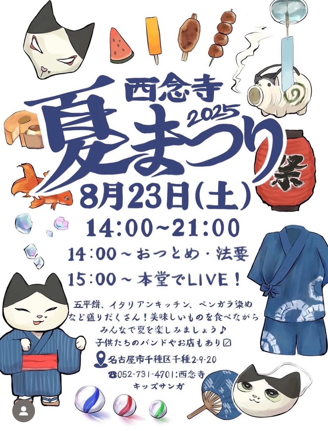 いつもありがとうございます。 今回は西念寺夏祭り2025のお知らせになります。 五平餅、イタリアンキッチン、ベンガラ染めなど盛りだくさん! 美味しいものを食べながらみんなで夏を楽しみましょう♪ 子供たちのバンドやお店もあり